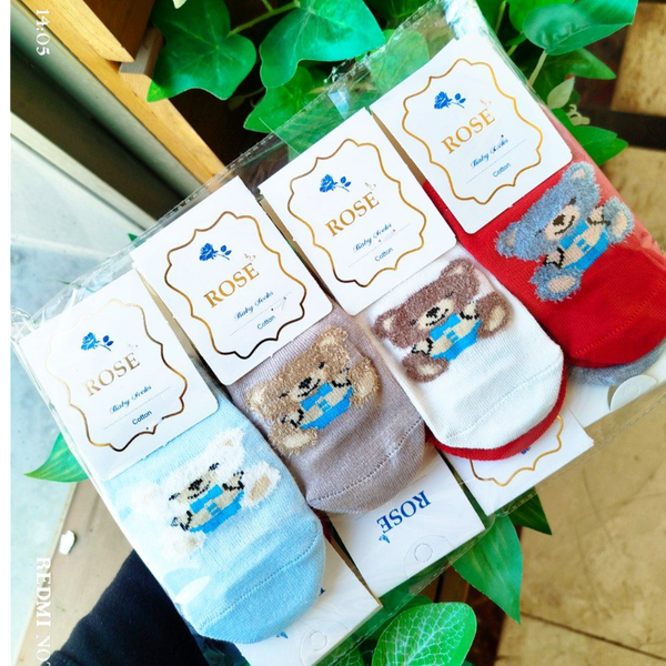 جوراب عمده نوزادی جوراب استپدار سایز نوزاد تا 12 ماه پنبه هندی طرح خرس بوکله