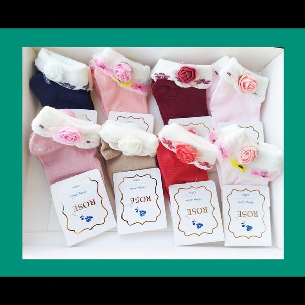 جوراب کار شده نوزاد تا 12 ماه دخترانه و پسرانه لب برگرد و نیم ساق متنوع 15 طرح کد 420